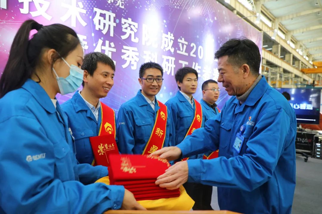 嚴(yán)鑒鉑董事長(zhǎng)為獲得成就獎(jiǎng)、標(biāo)兵獎(jiǎng)、骨干獎(jiǎng)、新星獎(jiǎng)的優(yōu)秀科研工作者頒獎(jiǎng)。